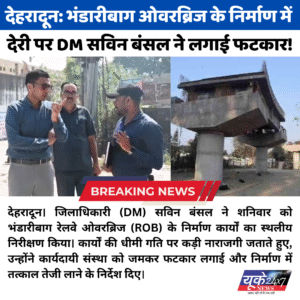 देहरादून। जिलाधिकारी (DM) सविन बंसल ने शनिवार को भंडारीबाग रेलवे ओवरब्रिज (ROB) के निर्माण कार्यों का स्थलीय निरीक्षण किया। कार्यों की धीमी गति पर कड़ी नाराजगी जताते हुए, उन्होंने कार्यदायी संस्था को जमकर फटकार लगाई और निर्माण में तत्काल तेजी लाने के निर्देश दिए।