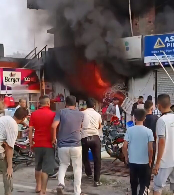 नैनीताल: कालाढूंगी में पेंट की दुकान में भीषण आग, लाखों का सामान जलकर राख